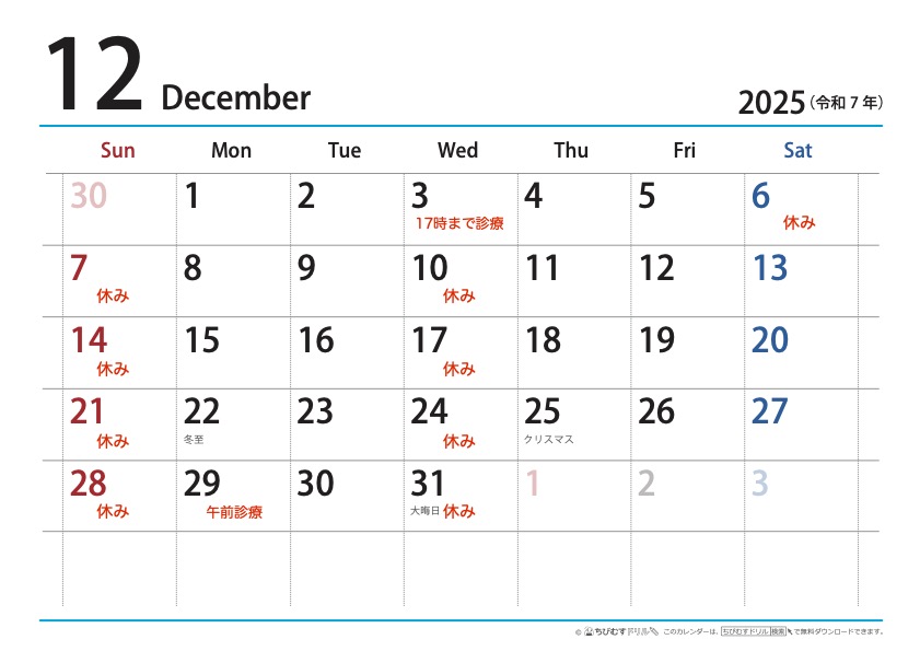 12月6日(土)は勉強会に参加するため休診日になっております。